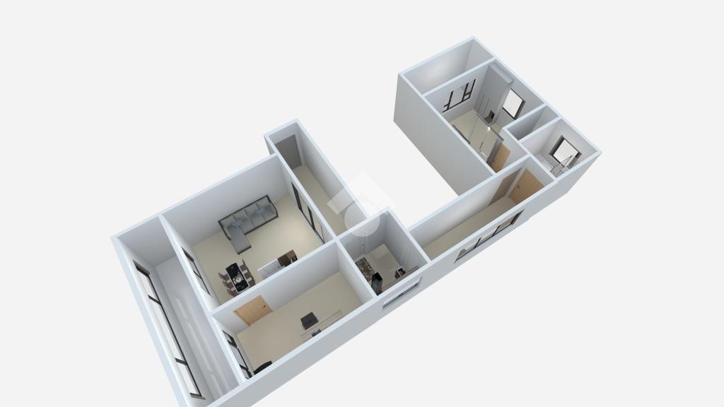 L'immobile si sviluppa su una quadratura interna di 100 mq ed è composto da ingresso in soggiorno con ampia balconata terrazzata con esposizione panoramica, cameretta, cucina, camera da letto matrimoniale con bagno di servizio ed infine bagno patronale.